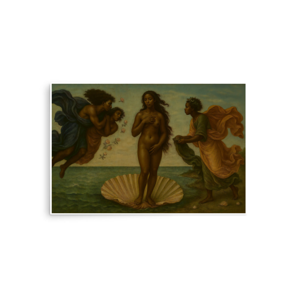 Rather than revisiting the myth as a symbol of perfection, this interpretation presents Venus as a symbol of becoming — of arrival, identity, and renewal. The Birth of Venus from Black Renaissance invites viewers to reflect on beauty not as something defined by tradition, but as something continuously revealed.