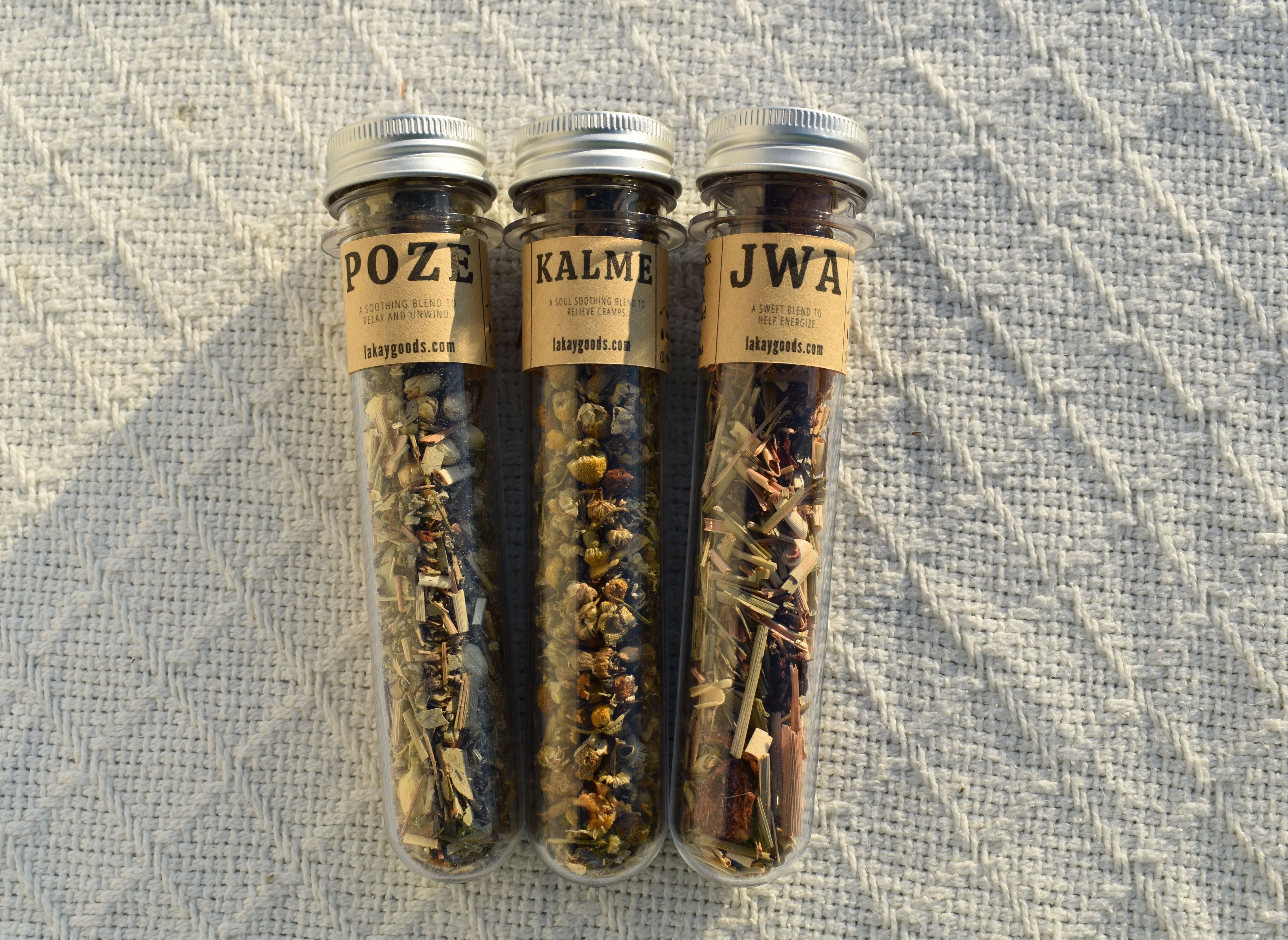 Sampler pack included .3 ounces of Poze, Jwa and Kalme.