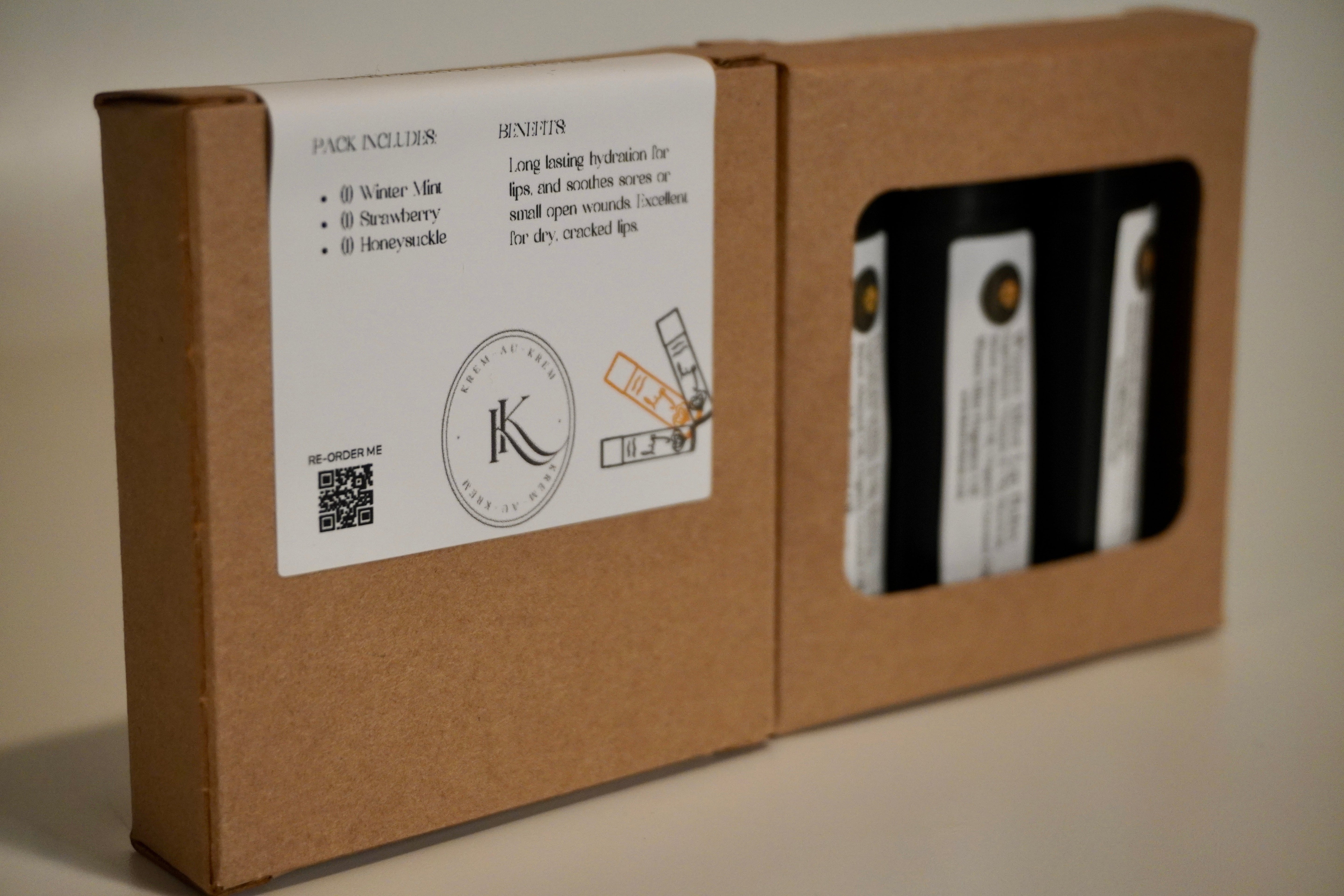 Our Hydrating Lip Balms are all the rave for our krew with dry, cracked lips. Now they are available in a beautiful little pack of one of each of our signature scents: